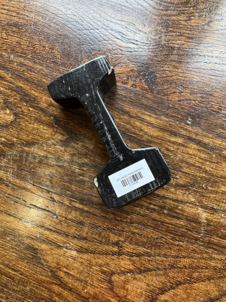 Theses are made from cut up bullhead rail which we have replaced due to wear or changes. Some pieces will be over 100 years old. Black felt is glued to one side.